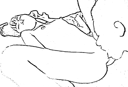 女性はソファや椅子に座って脚を広げ男性は跪いて勲位をします。